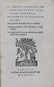 *** [Livres du XVIe s.]. SALLUSTE. De coniuratione Catilinae historia. Eiusdem De bello Iugurthino. Paris, Robert Estienne, 1544, petit in-8, 208 p., [16] f., marque de l'imprimeur gravée sur bois au titre, reliure époque plein veau havane, dos à...
