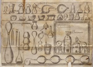 MATTE LA FAVEUR (Sébastien). PRATIQUE DE LA CHYMIE, divisée en quatres parties. Avec un avis sur les eaux minérales. MONTPELLIER, Daniel PECH, 1671. Un volume, in-12 (160 x 107 mm), de (15) ff., 360 pp., (13) ff., pleine reliure de l’époque...