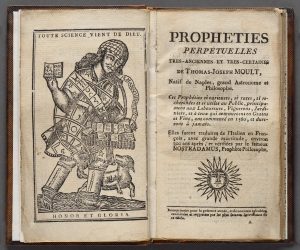 “Ces prophéties si curieuses, si rares, si recherchées et si utiles au public, principalement aux laboureurs, vignerons, jardiniers, et à ceux qui commercent en grains et vins, ont commencé en 1560, et dureront à jamais. Elles furent traduites de l’Italien en François avec grande exactitude, environ 300 ans après, et vérifiées par le fameux Nostradamus, prophète philosophe”.