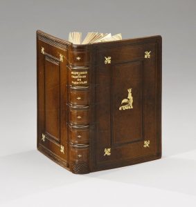 Décor à froid et doré à la Duseuil sur les plats, le premier orné d’un grand fer doré au centre, couverture et dos conservés.