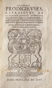 Pierre Boaistuau dit Launay (1517-1566) rassemble ici, les histoires les plus étranges de monstre, diables, animaux marins tels que les néréïdes, tritons, sirènes, etc. Les Histoires prodigieuses traitent des prodiges opérés par le diable, des démons et plus particulièrement des monstres, des hommes mi-hommes, mi-bêtes, etc.
