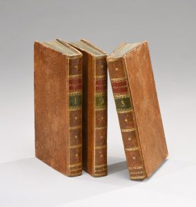 Quatre tomes réunis en trois volumes, in-12, pleines reliures de l’époque en veau granité.