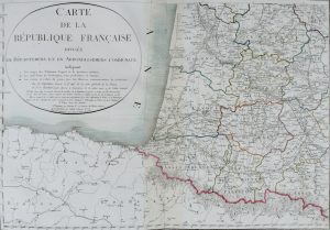 *** [Atlas]. CAPITAINE (Louis), CHANLAIRE (P.G.). Carte de la République française divisée en départemens et en arrondissemens communaux. A Paris, chez les auteurs, [an VIII], in-folio, 12 planches doubles de cartes gravées, limites coloriées,...