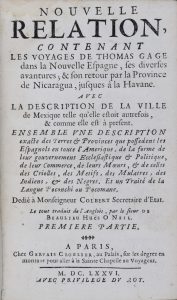 *** [Amérique] GAGE (Thomas). Nouvelle relation contenant les voyages de Thomas Gage dans la nouvelle Espagne,… et son retour par la province de Nicaragua, jusques à La Havane. Avec la description de la ville de Mexique…Paris, Clouzier, 1676,...