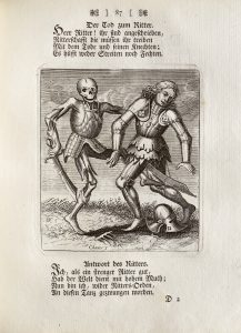 Les 43 figures, accompagnées d’un dialogue entre la mort et la personne concernée, ont été gravées sur cuivre par Jacques-Anthony Chovin d’après les gravures de Matthieu Mérian pour l’édition germanique de 1744.