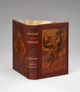 MICHELET (Jules). LA SORCIÈRE. Texte intégral publié avec une préface par AD. Van Bever. PARIS, CHEVREL, 1911. Un volume, grand in-8 (255 x 170 mm), pleine reliure en maroquin bordeaux. Dos à 4 nerfs décoré à froid et portant le titre...
