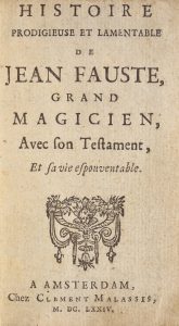 Jean Fauste, fils d’un paysan de Weymar, est élevé par un riche bourgeois de Wittemberg, son parent, qui le destine à l’état ecclésiastique. A peine reçu docteur en théologie il embrasse la débauche et se rend à Cracovie, ville célèbre par ses écoles de magie.