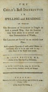 [GIGNOUX (John)]. ENTICK (John). The Child's Best Instructor in Spelling and Reading. A New Edition, being the Ninth, carefully revised, corrected, altered, and enlarged. Londres, B. Law & C. Dilly, 1788. In-12, basane fauve, dos muet, tranches...