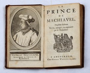 MACHIAVEL. Le Prince. Amsterdam, Henri Wetstein, 1686. In‑12, veau granité, dos orné, tranches jaspées (Reliure de l'époque).