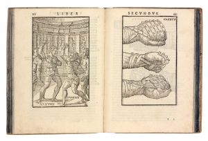 Quatrième édition d'un des premiers livres illustrés sur la gymnastique et les sports antiques, ornée de vingt-cinq gravures sur bois à pleine page montrant des scènes de lutte, de boxe, d'exercices divers, de bains et deux plans de palestres. # Le titre et le dernier feuillet portent chacun une marque à la fleur de lis des Giunta. # « Mercuriale, professor of medicine at Bologna and Pisa, is probably best known to modern students of medical history for the present work, first published in 1569. It was the first complete text on gymnastics and stresses the importance that all forms of exercise have in maintaining good health. Relying heavily on ancient practices, this work is an excellent compendium of the physical therapy of earlier times » (Heirs of Hippocrates, n°354, à propos de l'édition de 1587). # Bel exemplaire en vélin ancien. # De la bibliothèque des Scuole Pie Fiorentine, avec ex-libris manuscrit au bas du titre daté 1787. # Petite mouillure marginale aux derniers feuillets. # Camerini, n°1067 – Adams, M-1320 – Brunet, III, 1646 – Wellcome, I, 4224.