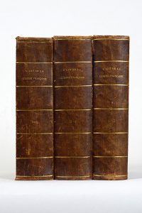 parties, 3 volumes in-8, demi-basane brune, dos lisse orné de filets dorés, tranches mouchetées (Reliure de l'époque).