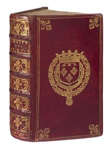 ; le temps, l'âge & le temperament où ils conviennent. Paris, J. B. Cusson & P. Witte, 1702. In-12, maroquin rouge, triple filet doré, fleurs de lis aux écoinçons, armoiries au centre, dos orné de fleurs de lis dorées, roulette sur les coupes, dentelle intérieure, tranches dorées sur marbrure (Reliure de l'époque).