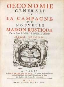 LIGER (Louis). Œconomie generale de la campagne, ou nouvelle maison rustique. Paris, Charles de Sercy, 1700. 2 volumes in-4, veau fauve, dos orné, tranches mouchetées (Reliure de l'époque).