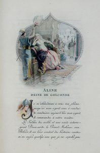BOUFFLERS (Stanislas de). Aline, reine de Golconde. Paris, Société des Amis des Livres, 1887. In-8, bradel demi-maroquin bleu avec coins, filet doré, dos orné, non rogné, couverture (Lemardeley).