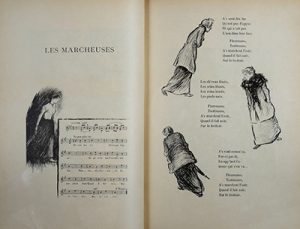 BRUANT (Aristide). Chansons et monologues, paroles et musique. Paris, Geffroy s.d. [1896-1897]. 150 livraisons en 3 volumes in-8, demi-chagrin rouge avec coins, double filet doré, dos orné, tête dorée, non rogné (Reliure de l'époque).