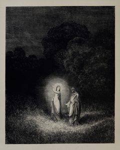 « Un des livres de Doré les plus rares », selon Carteret. # Premier tirage de la magistrale illustration de Gustave Doré, comprenant un portrait et 75 planches à fond teinté sous serpentes légendées, accompagnant le texte italien et la traduction française de Pier-Angelo Fiorentino. # Ex-dono manuscrit de l'époque sur une garde. # Carteret, III, 184.
