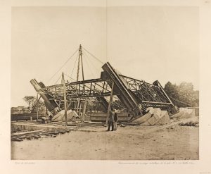 Édition originale, avec, dans le volume de texte, le portrait de Gustave Eiffel en frontispice et 253 figures in-texte. Les 2 planches doubles des reproduction de signatures et autographes et l'Appendice-Notice sur les travaux de Eiffel et les principaux ouvrages exécutés par ses établissements de 1867 à 1890 sont reliés à la fin du volume. # Le volume de planches est bien complet de ses 53 planches doubles lithographiées (quelques-unes en couleurs), numérotées I à XLVII (dont 8 pl. bis, ter ou quater, les planches XXVI et XXVII ne sont jamais parues), la carte lithographiée coloriée en planche double, et les 13 planches en héliogravure, le tout monté sur onglets. # Tirage à 500 exemplaires numérotés sur papier vélin. # Reliure frottée avec manques, rousseurs.