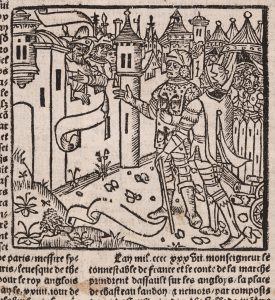 Seconde édition, aussi rare que la première parue en 1514. Elle renferme des augmentations, qui couvrent jusqu'à la date de la publication, et dont toutes ne seront pas reprises dans les éditions ultérieures ; ainsi, chaque édition de cet ouvrage est d'une composition et d'un contenu particulier. Il faut noter que la Chronique, divisée en de très nombreux petits chapitres, ne traite pas uniquement de faits bretons, comme le titre pourrait le laisser croire. C'est un panorama historique et anecdotique, qui commence à l'Antiquité et couvre tout le Moyen-Âge. L'importante illustration gravée sur bois se compose de 38 figures (dont 9 à mi-page ou à pleine page), et de nombreuses lettrines sur fond criblé, également gravées sur bois. Ex-libris de la bibliothèque de Clays-Palys.
