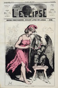 Tête de collection de ce journal politique et satirique, principalement illustré par André Gill. # Elle contient les 218 premiers numéros, parus de 1868 à 1872 sous la direction de François Polo, ainsi que les années 1874 à 1876, renfermant les numéros 271 à 400. # Les caricatures de L’Éclipse ont été de nombreuses fois censurées, obligeant les artistes à composer une nouvelle caricature pour la première de couverture. Les exemplaires recomposés portaient en général le numéro du fascicule suivi de la lettre « b » pour bis. Cette collection contient la plupart de ces numéros ainsi que les cinq rares suppléments d’André Gill pour 1870 et le supplément du n° 197. # Manquent les numéros 160, 331, 370 à 374 et quelques numéros bis.