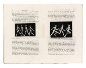 Édition originale peu commune, illustrée de 214 figures en noir dans le texte et de 3 photogravures hors texte, dont une dépliante. # Important ouvrage de synthèse sur les travaux de l'auteur : médecin atypique, Étienne-Jules Marey (1830-1904) abandonna la pratique dès 1864 et s'est en effet tourné très tôt vers les recherches sur la photographie et le cinéma naissant, le tout à partir d'un intérêt pour la prise de vues et la reproduction du mouvement, permettant d'en élaborer une véritable analyse scientifique. # Sa technique novatrice de chronophotographie – « l'application de la photographie instantanée à l'étude du mouvement » – est un des jalons les plus importants dans l'invention de la cinématographie, car il permet d'analyser le mouvement dans toutes ses phases. Dès 1888, Marey composa grâce à ses inventions les premiers films de l'histoire du cinéma. # En français dans le texte, n°318. # On joint, du même : La Chronophotographie. Paris, Gauthier-Villars, 1899. In-8, broché, couverture muette. Édition originale, illustrée de nombreuses photogravures et figures dans le texte. C'est un tiré à part de la conférence sur la chronophotographie prononcée le 29 janvier 1899 au Conservatoire des Arts et Métiers. L'exemplaire est broché dans une couverture muette en papier vert plutôt que dans la couverture imprimée de l'éditeur.
