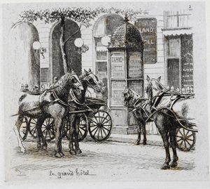 MARTIAL (Adolphe Martial Potémont, dit A.-P.). Notes et dessins d'un Japonais sur Paris en 1878 pendant l'Exposition universelle. Traduction par A. P. Martial. Paris, Paris-Gravé, Imprimerie Beillet, s.d. In-4, en feuilles, chemise imprimée.