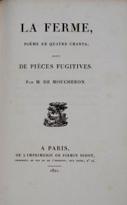 MOUCHERON (M. de). La Ferme. Poëme en quatre chants ; suivi de pièces fugitives. Paris, Firmin Didot, 1821. In-8, bradel cartonnage beige, dos lisse orné de filets dorés, non rogné (Reliure de l'époque).