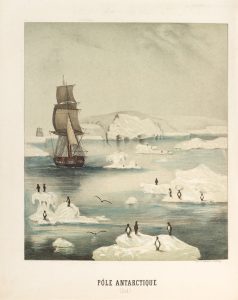 Bel album illustré de 37 lithographies hors texte coloriées et gommées, réalisées par E. Lemaître à Strasbourg, montrant une éruption volcanique, une aurore boréale, un tremblement de terre, une tempête de sable, les chutes du Niagara, la source glaciaire du Rhin, la grotte de Fingal, un pont en pierre naturel en Virginie, Chimborazo aux Andes, l'estuaire du Nil, etc. Le titre est orné d'une vignette en bistre. # Quelques rares rousseurs. # Gumuchian, n°4546.