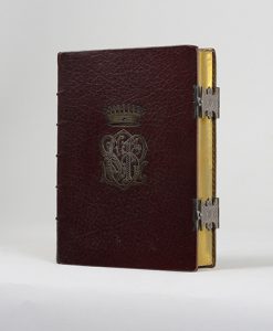 PAROISSIEN ROMAIN. Paris, Curmer, [1880]. In-12, maroquin grenat, chiffre SPG métallique surmonté d'une couronne comtale, roulettes intérieure, doublures et gardes de moire bleu ciel, tranches dorées sur marbrure, fermoirs métalliques, chemise...