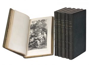 Nouvelle édition des œuvres de Rabelais collationnée sur les textes originaux. # Exemplaire du tirage de tête imprimé sur papier de chine et enrichi de deux suites d'illustrations, l'une de seize eaux-fortes originales de Félix Bracquemond, l'autre de onze eaux-fortes originales d'Émile Boilvin. # Bel exemplaire en maroquin janséniste de Gruel. # Étiquette de la Librairie Pierre Berès. # Menus frottements sur les mors.