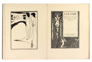 Première édition illustrée de cette pièce écrite en français et dédiée à Pierre Louÿs, ornée de 16 bois gravés d’Audrey Beardsley tirés sur japon, dont un projet de couverture, un titre-frontispice, une table des planches, 12 planches hors-texte et un cul-de-lampe. # Un des 100 exemplaires de tête sur vergé d'Arches, broché dans sa couverture verte de premier tirage, condition rare. # Dos refait.