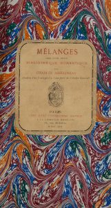 ASSELINEAU (Charles). Mélanges tirés d'une petite bibliothèque romantique. Paris, Pincebourde, 1866. In-8, demi-veau blond, dos orné, nom E. Michelot en queue, non rogné, couverture (Reliure de l'époque).