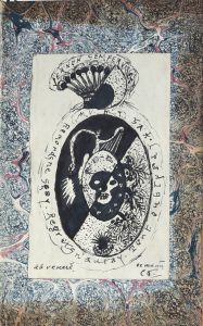 En page de garde, Farrère a dessiné un grand ex-libris à l’encre noire reprenant la devise Vernon semper Viret de la ville éponyme.