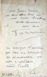 Bel envoi signé de Claude Farrère (1876-1957) à Yvonne Vernon (1883-1918), femme de lettres, maîtresse de Paul-Jean Toulet, familière du cercle de l’Amazone : pour Yvonne Vernon, ces deux vieux livres qui ont couru longtemps toutes les mers avec moi… en marque d’amitié que rien ne rompra, de dévouement que rien n’arrêtera, même l’oubli. 25 octobre 1914.
