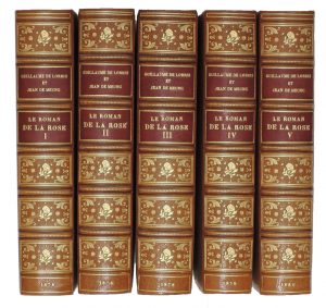 LORRIS (Guillaume de) et MEUNG (Jean de). Le Roman de la Rose. Édition accompagnée d’une traduction en vers. Précédée d’une introduction, notices historiques et critiques; suivies de notes et d’un glossaire par Jules Croissandeau. Paris,...