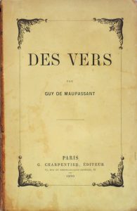 MAUPASSANT (Guy de). Des Vers. Paris, Charpentier, 1880. In-12, broché. Couvertures imprimées. Un peu défraîchie, dos cassé avec trace de scotch très marquée. (8)-214 pp. Qq. rousseurs. Édition originale en tirage ordinaire (il n’y a...