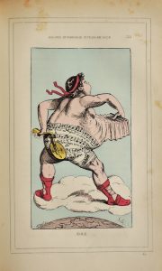 TOUCHATOUT (Léon Bienvenu dit). Grande Mythologie Tintamarresque. Dessins de G. Lafosse et Moloch. Paris, Chez tous les libraires, 1881. Grand in-8, reliure demi-chagrin rouge à coins, dos à 4 nerfs orné. Qq. épidermures et frottements....