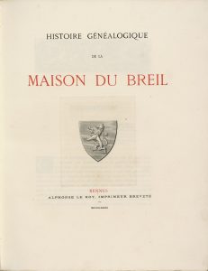*** [DU BREIL DE PONTBRIAND (Paul)]. Histoire généalogique la maison du Breil. Rennes, Impr. Le Roy, 1889, in-4, XV-360 p., 1 tableau généalogique dépl. h.-t. [Avec] Supplément aux additions et corrections. Rennes, Impr. Simon, 1895. Deux...