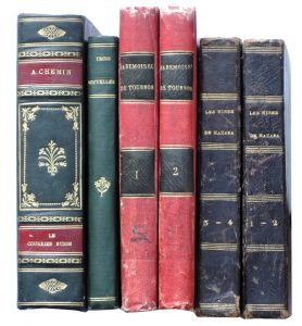 In-12, reliure demi-percaline verte, dos orné d’un fleuron doré. (4)-iv-196 pp. Ex-libris manuscrits en page de garde et sur le faux-titre. Contient Le Démon des Apennins; L’horoscope ou Isabelle, Reine de Maroc; Eugène de Sainville ou La tribu arabe.