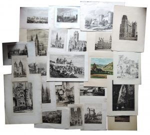 VUES DE VILLES. Fin XIXe - début XXe siècle. Réunion de 24 vues de ville (eau-forte, héliogravure, lithographie) de différents formats : Poitiers, Gannat, Le Puy, Reims, Saint Ouen, Amboise, Coutances…