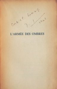 KESSEL (Joseph). L’Armée des Ombres. Alger, Charlot, Paris, Julliard, 1945. In-12, broché. Couverture défraîchie, dos insolé. 253-(3) pp. Exemplaire du Service de Presse avec un envoi (non nominatif) signé de Joseph Kessel sur le...