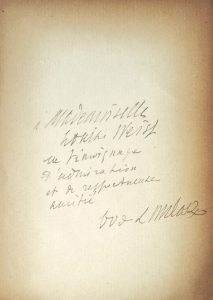 Envoi autographe signé du poète lituanien Oscar Milosz (1877-1939) à Louise Weiss :