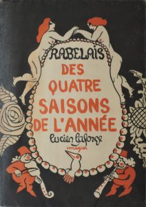 [LAFORGE]. RABELAIS. Des Quatre Saisons de l’Année. Imagier Lucien Laforge. Paris, Eugène Rey, 1923. In-8, broché. Couverture illustrée (légèrement tachée). Non paginé. Illustrations à pleine page en noir et rouge illustrant les...