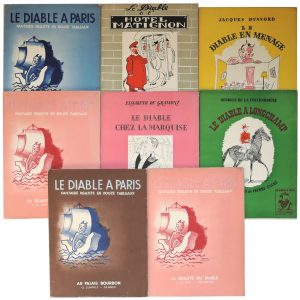 [REVUE]. Le Diable à Paris. Fantaisie réaliste en douze tableaux par les maîtres de la plume et du crayon. Paris, Éditions Littéraires de France, s. d. (1935-1939). 8 volumes in-4, brochés. Couvertures illustrées par Paul Colin. Qq. petites...
