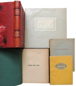 In-4, broché, étiquette imprimée sur le plat. 8 pp. On joint 4 variantes tapuscrites du poème de Toulet “Dans Arles où sont les Alyscamps”.
