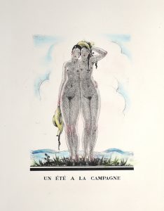 [DROZ (Gustave)]. Un Été à la Campagne. Correspondance de deux jeunes Parisiennes recueillie par un auteur à la mode. S. l., s. n., 1868 (Début XXe s.). In-4, broché (en partie débroché). Frontispice, 154-2 bl.-1 pp. et 11 lithographies en...