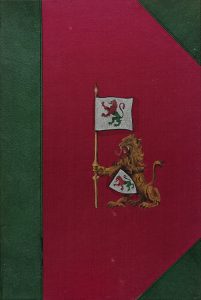 (Vincent)]. Mariage de Jean d'Espinay et combat singulier avec Millord Dudlay. Extrait des Mémoires du maréchal de Vieilleville. Illustrations de Luccio Rossi. Paris, Impr. Chamerot & Renouard, 1893, in-folio, 67 p., 1 planche coloriée (sur 3 ?), reliure demi-chagrin vert bronze à coins, dos à nerfs, titre et chêne couronné des Palys dorés, jolie toile brodée à motif floral aux plats (dos passé devenu brun, tache claire sur une garde, le reste frais). Exemplaires offerts à Monsieur le comte de Palys par Monsieur d'Espinay, avec ex-dono signé au second ouvrage. Le premier est très rare, tiré à vingt exemplaires (chiffre du tirage modifié à l'encre). Cette Notice généalogique est tirée d'un manuscrit inédit de Gédéon Du Pré-le-Jay, seigneur de Kaerdaniel.
