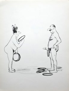[TETSU]. Suite de 40 planches. S. l., s. n., s. d. (vers 1960). In-folio, en feuillets. Chemise vert pâle muette contenant 40 illustrations très libres en noir sur papier fort. Un des portfolio érotique connu sous le titre de Les Belles...