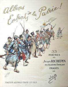[JOB]. RICHEPIN (Jean). Allons Enfants de la Patrie ! 33 Poèmes de Jean Richepin. Images de Job. Tours, Mame, s. d. (1920). In-folio, reliure demi-maroquin à coins grenat, dos à deux larges nerfs. Petit manque de cuir sur le mors du second...
