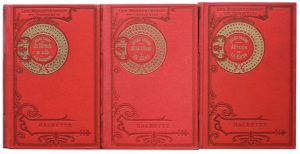 VERNE (Jules). Réunion de trois volumes : De la Terre à la Lune. Autour de la Lune. Les Naufragés de l’Air. Paris, Hachette, 1925-1926. 3 volumes in-12, cartonnage éditeur percaline rouge, dos et plats ornés. Qq. illustrations en noir....