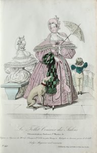 [MODE]. REVUE. La Lanterne Magique. Année 1835. Paris, Au Bureau du Journal, 1835. In-8, reliure de l’époque demi-basane rouge, dos lisse orné. Frontispice, 384 pp. et 10 planches hors texte dont 5 planches de toilettes réhaussées en...